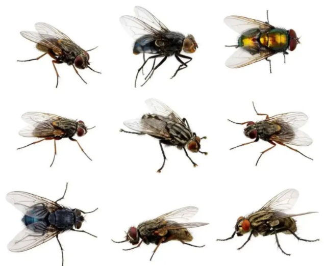 常見的蠅種 飯蠅(又名舍蠅、中國家蠅) 身體:中等,全身灰褐 色, 體長(zhǎng)約7mm 中胸背板:黃灰色,有四條縱的黑紋,幾乎等長(zhǎng)。 大頭金蠅 身體:體型較大而肥胖,全身有藍(lán)綠色金屬光澤;體長(zhǎng)約7-11mm。 頭部:雄蠅復(fù)眼巨大,鮮紅色,兩眼幾乎相接。頭頂額部黃褐色,有黃色短毛。觸角及須均為橙黃色。 絲光綠蠅 身體:中等,有金綠色的金屬光澤,體長(zhǎng)約7mm。 觸角:觸角芒短,有羽狀分枝。 胸部背板:有閃耀光澤。 巨尾阿麗蠅 身體:體型巨大,深青黑色,體長(zhǎng)約8-12mm。 胸部:寬闊,盾板前端正中有三條明顯的黑縱紋。 腹部:粗短,帶有深濃的藍(lán)黑色金屬光澤。 棕尾別麻蠅 身體:灰色,體長(zhǎng)12mm。 胸部:有三條縱行的黑色帶紋。 腹部:有暗色與淺色的格子,色彩閃閃發(fā)光。 生活習(xí)性:棲息于戶外草叢、糞堆、垃圾等處。繁殖季節(jié)自四月至十一月,以六月最多。 廄腐蠅(又名大家蠅) 身體:體較黑,體長(zhǎng)約8-9mm。 中胸:背板有四條縱紋,中央兩道連貫,近旁兩條中間斷裂。 腹部:棕褐色,有斑紋。 生活習(xí)性:棲息于牛、馬、豬舍及庭院草地;顒(dòng)季節(jié)較長(zhǎng),自二月至十二月。 元廁蠅(又名小家蠅、灰腹廁蠅) 身體;較家蠅為小,灰黑色,體長(zhǎng)約6mm。 觸角:無分叉。 胸部:背板有三條黑色縱紋。 腹部:雄蠅腹部細(xì)長(zhǎng)而尖,末端黑色,兩旁有斑紋。雌蠅腹部為卵圓形,暗灰色,略有光澤。 生活史 生活周期 在氣溫25--35℃的條件下: 卵在潮濕的孳生物中,經(jīng)8小時(shí)至一天就可以孵出幼蟲; 幼蟲(蛆)經(jīng)過5—6天可化蛹; 蛹期4—5天; 從卵至成蠅脫殼而出約10—12天。 如果溫度適宜,每年可完成7~8代,而在我國南方溫暖地區(qū),每年可繁殖十多代。 蠅類的孳生場(chǎng)所 垃圾類:垃圾箱(房)、果殼箱、生活垃圾堆放場(chǎng)(點(diǎn))、污物(泔水)桶、 人糞便類:糞缸、糞池、花盆、綠化帶等。 禽、畜糞便類:牲畜柵圈、寵物糞便 ; 腐敗動(dòng)物; 腐敗植物類; 分泌物、各種有機(jī)物等其他類。 |